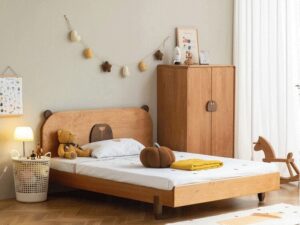 Giường ngủ gỗ sồi cho trẻ em, chất liệu gỗ sồi chắc chắn với kích thước phù hợp với và kiểu dáng dễ thương tạo sự thích thú cho trẻ